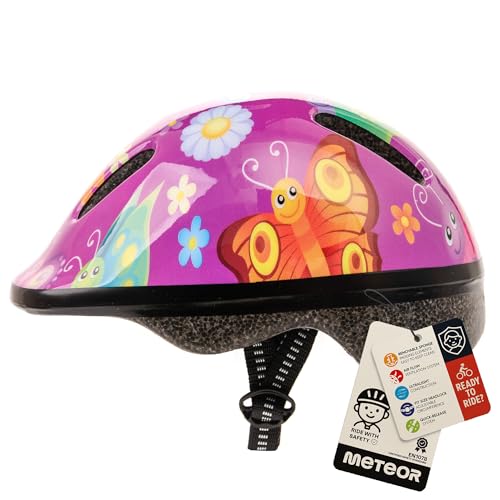 meteor® Cykelhjälm barn- och ungdomshjälmar: Cykelhjälm hjulsport skateboard inlines-skridskoåkning BMX Scooter – utvecklad för den yngsta användarens säkerhet flerfärgad fjäril XS 44-48 cm
