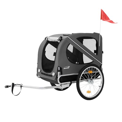 Hauki cykelkärra & hundbuggy 2 i 1 hopfällbar, grå, 130x72x90 cm, hundkärra för hundar upp till 40 kg, kärra med reflexer, koppel & flagga, hund cykelkärra hundvagn hundtransportör
