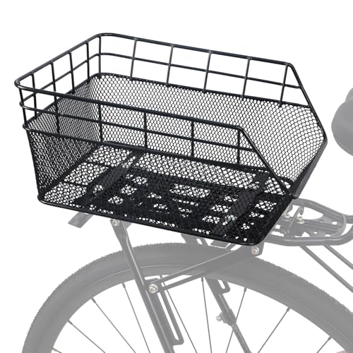 FWEEK Cykelkorg bak, 40 x 30 x 20 cm cykelkorg stor bakre cykelkorg bagagehållare korg av metall, svart bagagehållare korg med cykel bakkorgkläder