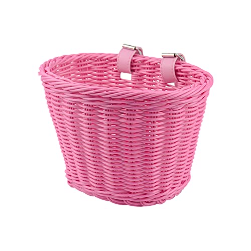 Flintronic Cykelkorg för barn, handvävd cykelkorg för barn, flickor, pojkar, med cykeltillbehör – rosa