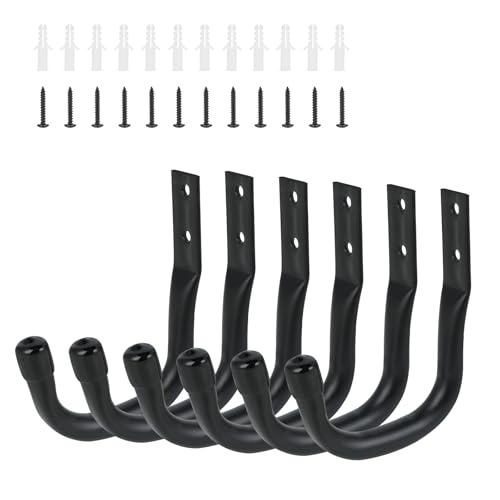 Lrocotanc 6 st väggcykelgalgar, svarta väggkrokar för garage, J-krokar för cykel, väggmonterad cykelkrok, verktygshållare, stegar och tunga föremål (11,5 x 9 cm)