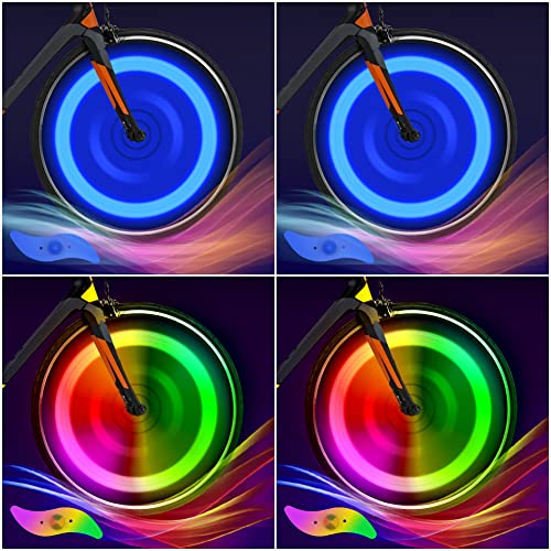 Flintronic Lampor för cykelekrar, 4-pack, blinkande lampa för däcket, LED, neonhjul, blinkande cykelljus, vattentäta, 3 blinkande lägen, cykeltillbehör för vuxna och barn (2 färgglada + 2 blå)