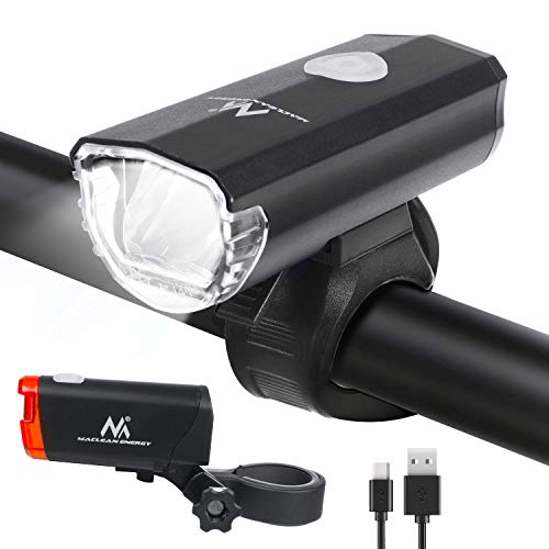 Maclean MCE312 LED cykelljus set LED-cykellampor framljus bakljus 2 belysningslägen 30 lux StVZO godkänd