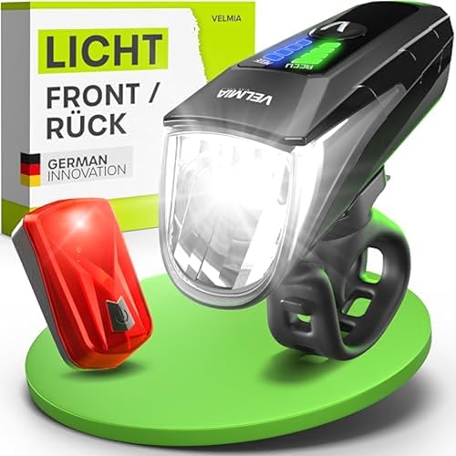 Velmia cykellampor set StVZO godkänd med USB-batteridrift och 8,5 h ljustid I LED regnsäker och uppladdningsbar I cykelljus, tillbehör, fram + bakljus