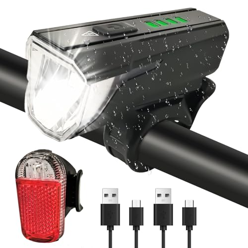 Hually Cykelljus, superljusa uppladdningsbara cykellampor med strålkastare och bakljus, vattentäta, 800 mAh med 4 ljuslägen, robusta och enkel installation, perfekt för berg-, stad-, vägcykling