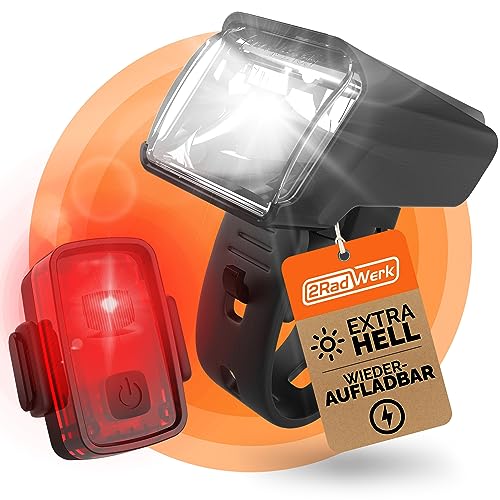 2RadWerk, ED cykelljussats, StVZO-godkänd, cykelljus omkopplingsbar 15-35 Lux, cykelljus