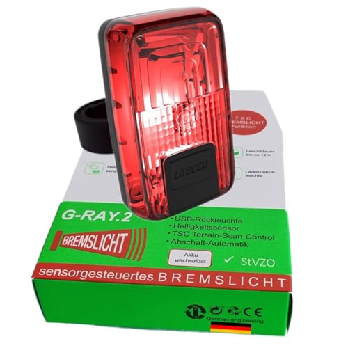 Prisvärd vinnare – Litecco G-RAY.2 I lysande LED-batteri cykelljus I bakljus med bromsljus I Power LED I USB-laddningskabel I StVZO