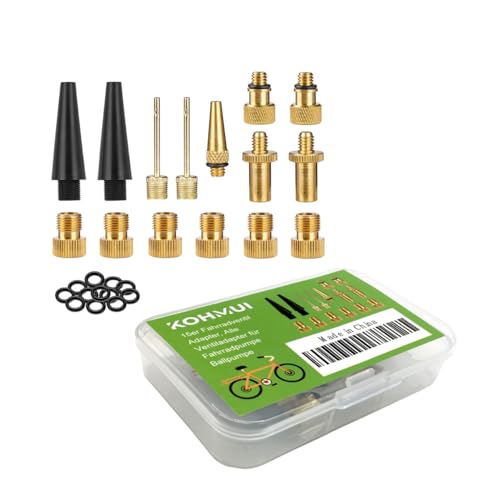 Cykelventil adapter, KOHMUI 15 premium cykelventil-set, alla ventiladaptrar SV AV DV Dunlop fransk blixtventil autoventil sclaverandventil med tätningsring för kompressor cykelpump