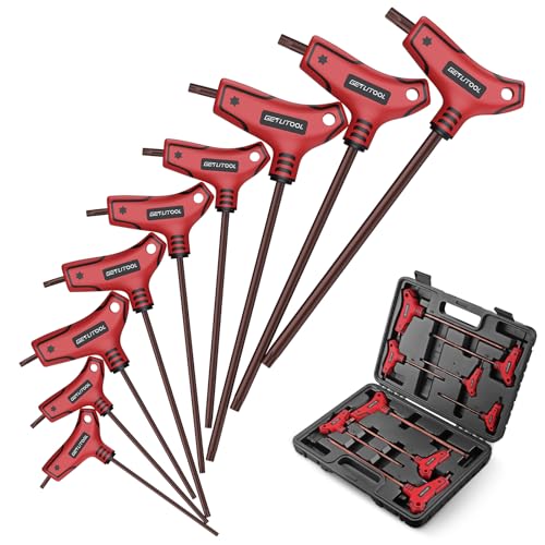 GETLITOOL 9 St Torx-Skiftnyckelset Med T-Handtag, S2 Stål T10-T50, Stjärnnyckel Med Storleksmärkt Och Förvaringslåda För Möbelmontering, Cykelreparation