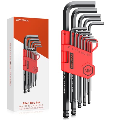 GETLITOOL 13 PCS Sexkantsnycklar, kulförsedda insexnycklar, Cr-V metriska insexnycklar med storlekskodning, storlek 1,27-10 mm, för cykelreparation, möbelmontering, reparation av apparater