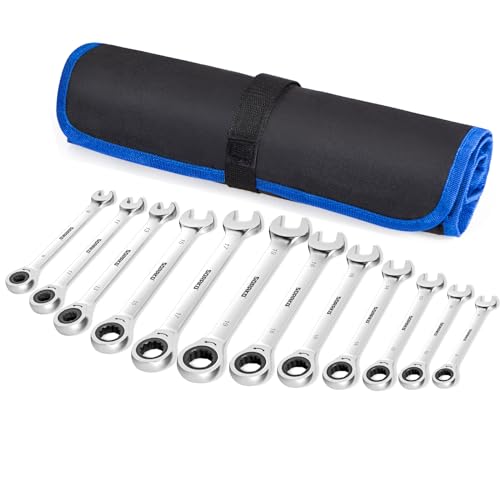 SORAKO spärrnyckelset, ringnyckelsats, skiftnyckelsats, 8–19 mm, 12 st skiftnyckel ringspärrnyckel för cykelreparation bilreparation