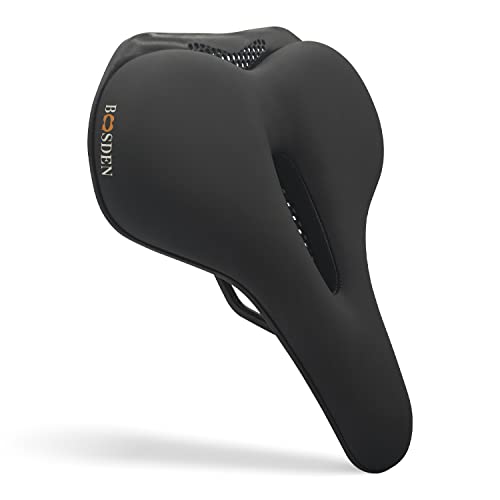 BOOSDEN Cykelsadel för kvinnor och män – bekväm, mjuk, minnesskum, ergonomisk, stötdämpande, andningsbar – svart