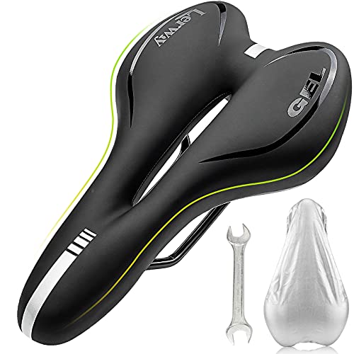 LERWAY Cykelsadel, bekväm cykelsadel, gel cykelsadel, vattentät svart minnessvamp cykelstol, andningsbar PU-läder cykelsadel