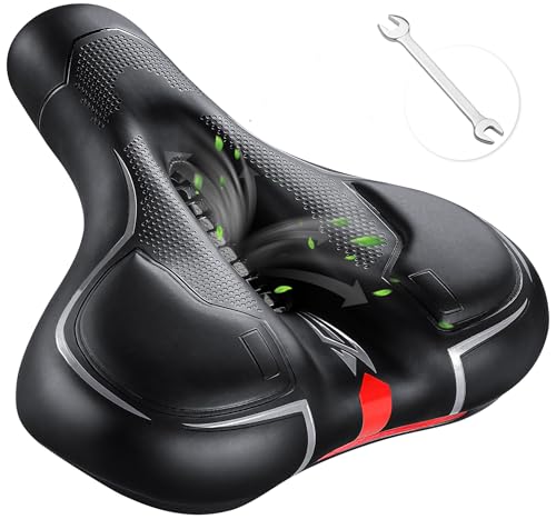 IPOW komfort cykelsits för kvinnor eller män, cykelsadel, ersättning, vadderad mjuk hög densitet, minnesskum med dubbla stötdämpande gummibollar, upphängning, universell passform för