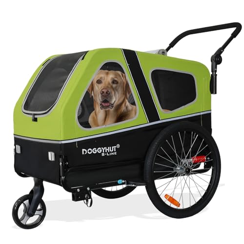 Doggyhatt S-Line XL hundvagn & hundvagn med fjädring 2-i-1 hund cykelsläp, joggare fjädrad upp till 45 kg (grön/svart)