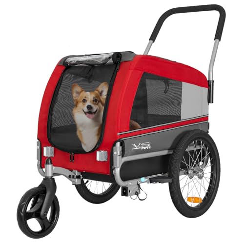 Veelar husdjur medium hundvagn & buggy 2-i-1 cykelsläp hundvagn jogger 80204 (röd)