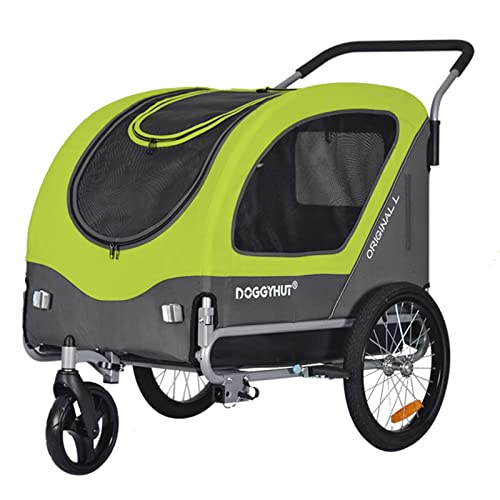 Doggyhut Original L cykelsläp och hundvagn, 2-i-1, för hundar upp till 35 kg, hundvagn, joggare, hundvagn med parkeringsbroms, Tiggo (grön)