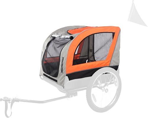 Flamingo cykelsläp Jolene grå & orange – 77,5 x 58 x 67 cm – med plastbadkar, breda hjul och 2 justerbara fjädrar – 2 cykelkopplingar och fästsystem med säkerhetslås