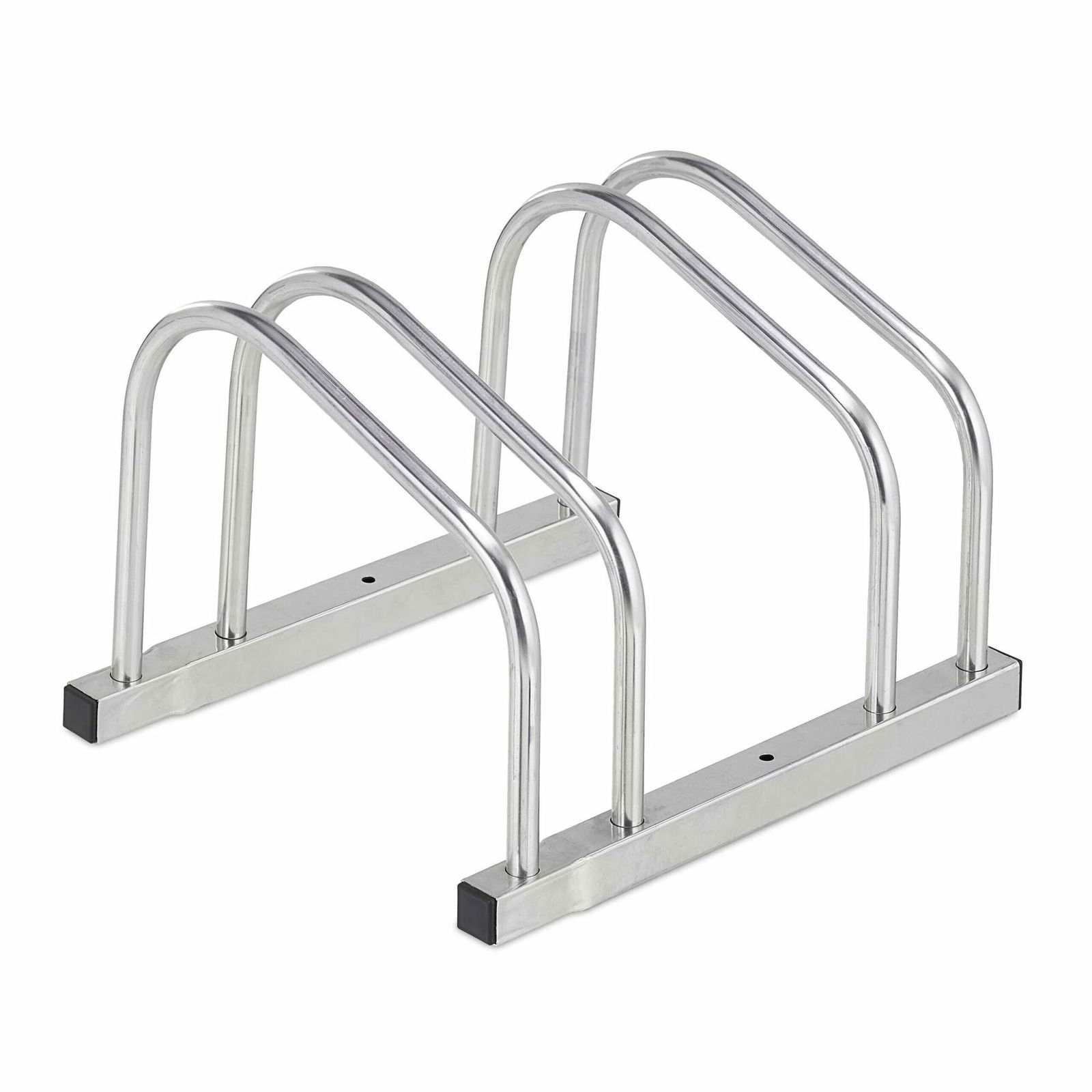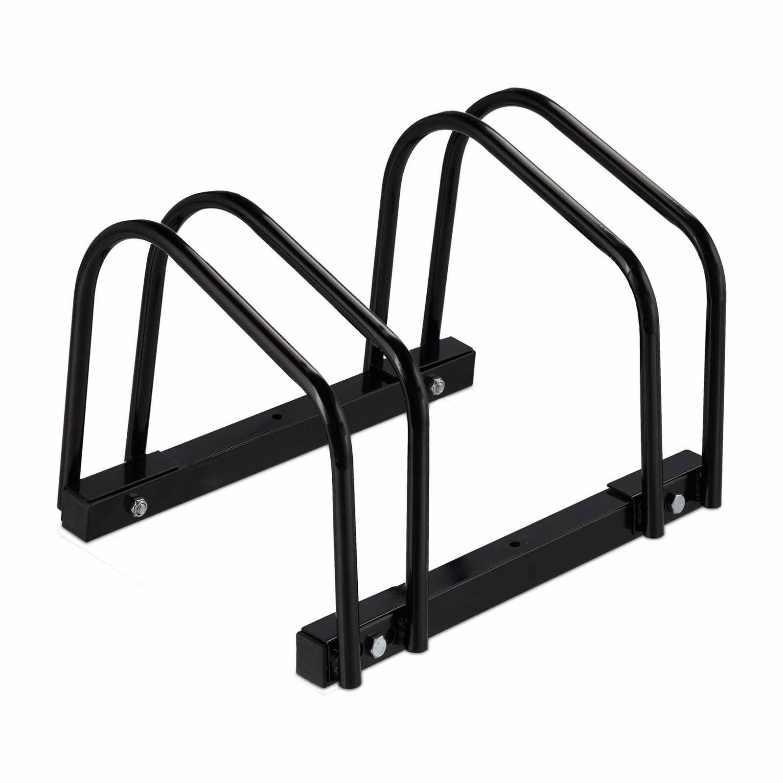 Relaxdays cykelställ, för 2 cyklar, av metall, med monteringsmaterial för golv, H x B x D: 27 x 40,5 x 33 cm, svart