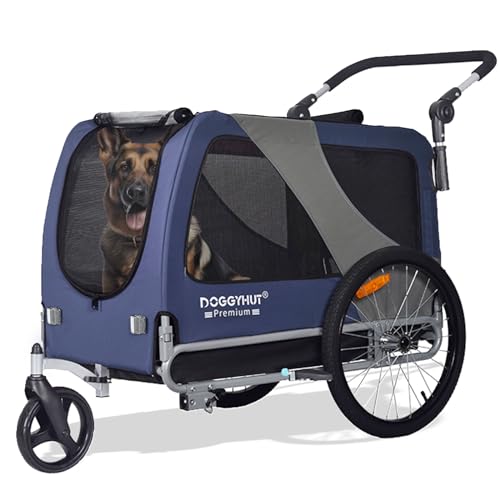 DOGGYHUT® Premium XL 2 i 1 hundcykelsläp och joggare 23–45 kg cykelvagn för hundar hundhänge för cykel 80106 (BLAU)