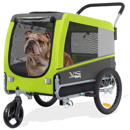 Veelar Pets stor hundvagn & buggy upp till 35 kg 2-i-1 cykelvagn för hundar, hundcykelvagn, hundbuggy jogger 80205 02 (grön)