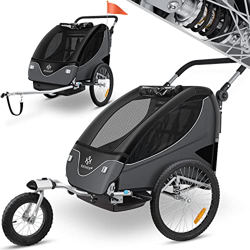 SAMAX Cykelvagn, joggare, 2-i-1, 360°, roterbar, barnvagn, cykelvagn, helfjädrad bakaxel för 2 barn i grått – Black Edition