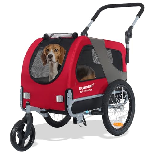 DOGGYHUT® Premium M hundvagn 2-i-1 hundvagn & joggare cykelvagn för hundar upp till 23 kg