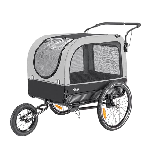 CXWXC Cykelvagn för hundar 2 i 1 cykelsläp och joggare hundvagn med stötdämpare, hundvagn maximal lastkapacitet 40 KG/88 lb (grå)