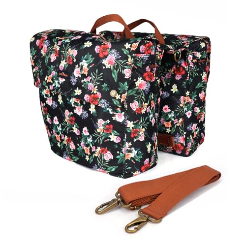 TOURBON Vattentät kanvas cykel baksäte bärare bagage förvaringsväska cykling dubbel upprullad cykelväska bakpack (blommönster)