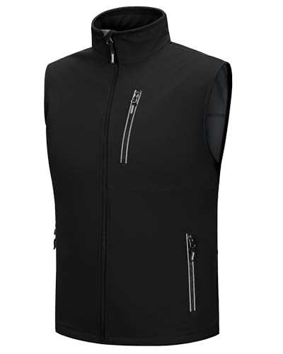 Outdoor Ventures Softshell väst herr utomhus cykelväst vattentät vindtät ärmlös jacka full dragkedja andningsaktiv löparväst, svart, S