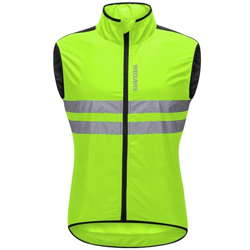 WOSAWE Herr Cykeljacka Vindtät Långärmad/Ärmlös Jacka Cykelväst Sportkläder med Reflekterande Remmar (BL205 Väst Grön, XL)