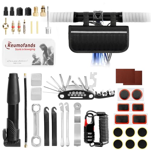 Hossom Cykelverktygssats, 40 st cykelreparationssats, cykelverktyg med minipump, 16-i-1 cykel multiverktyg, 12 cykellappar, bennyckel, saddle väska, cykellås för resor