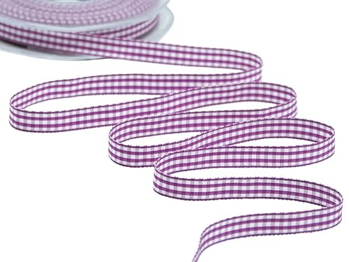 Furlanis - Bamby rutigt band, juldekorationstejp, presentpaket, Italienskt tyg - Mörk Cyklamen, 10 mm x 25 m