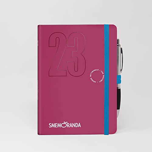 Smemoranda Veckodagbok 2023 Röd Cyklamen - 12 månader med Planner - Stor 12,9 x 18,7 cm - Hemmakontor University - Mjukt omslag, Fyrkantiga sidor, Elastisk, Rundade hörn - Penna ingår