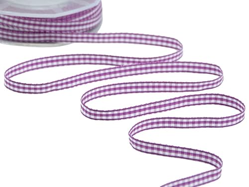 Furlanis - Bamby rutigt band, juldekorationstejp, presentpaket, italiensk tyg - mörk cyklamen, 6 mm x 25 m