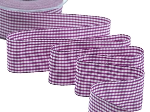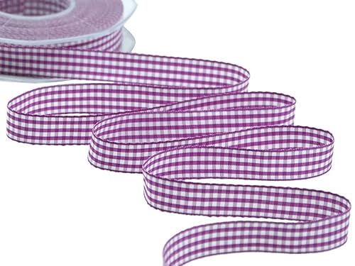 Furlanis - Bamby rutigt band, juldekorationstejp, presentpaket, Italienskt tyg - Mörk Cyklamen, 15 mm x 25 m