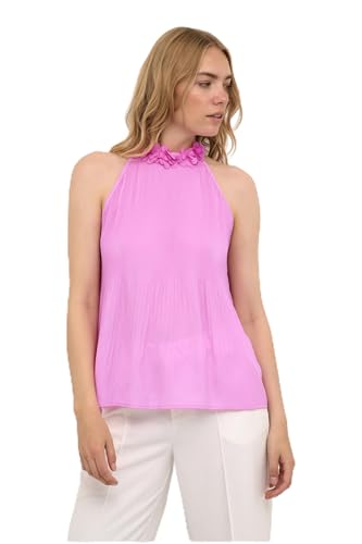Cream Kvinnors blus ärmlös grimma mock hals blommig applikation topp dam, Cyklamen, 40