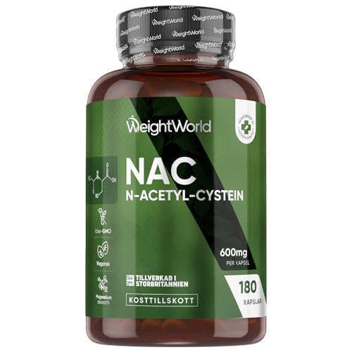 NAC - N-Acetyl L-Cystein - 180 kapslar - 600 mg per kapsel - 6 månaders förbrukning - Glutation - Aminosyror - Vegansk N Acetyl Cystein från WeightWorld
