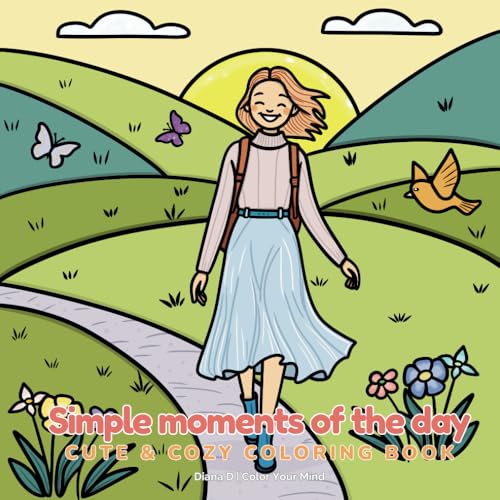 Simple moments of the day, cute & cozy coloring book: by Diana D | Color your mind, Cute & Comfy, Coloring Book for Adults and Teens Featuring Cute Cozy Daily Days, Coloring book for relaxation