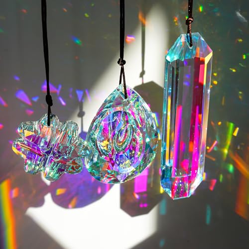 H&D HYALIN & DORA 3 st kristall regnbåge solfångare, hängande Aurora glasprisma för fönster, ljuskrona lampa droppar hänge heminredning