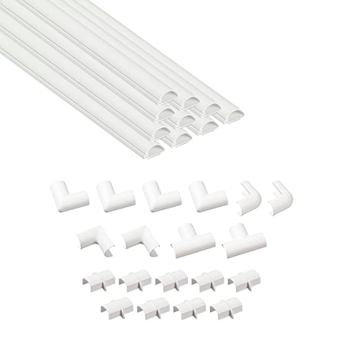 D-Line 4 meter kvarts rund kabeltrunking kit, hörnkabelskydd, självhäftande golvtrim med kabelkanal – 4 x 22 mm (B) x 22 mm (H) x 1 meter längder och 12 tillbehör – vit