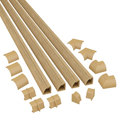 D-Line 4 meter fjärdedel rund kabeltrunking kit, hörnkabelskydd, självhäftande golvtrim med kabelkanal – 4 x 22 mm (B) x 22 mm (H) x 1 meter längder och 12 tillbehör – fläckbar träeffekt