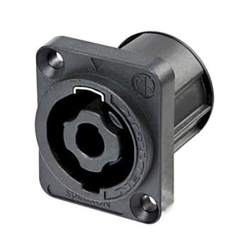 Neutrik 4-polig chassikontakt, svart fläns i D-storlek, försänkta genomgående hål, 3/16" platta flikar.