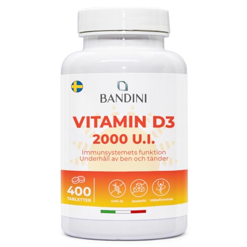 Bandini® D-vitamin 60 000 IE/månad 400 tabletter (+1 år) - Immunförsvar, ben-, tand- och muskelhälsa, kalciummetabolism, 50 mcg kolekalciferol, ren vitamin D3 (hög dos)