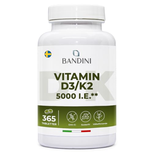Bandini® Vitamin D3 K2 365 tabletter (12 månader) - Vitaminer D3 2000 IE + 200 µg Vitamine K - Stödjer skelett, tänder, muskler, leder och immunsystem - Vitamin D K2 - Kolekalciferol & MK-7