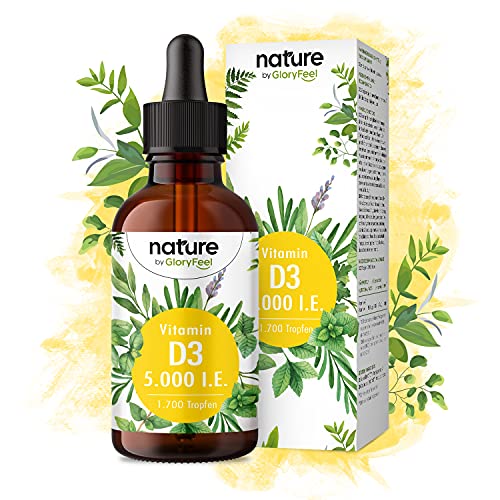 Vitamin D3 - Laboratorietestad 5000 I.E. per Droppe - 50 ml (1700 Droppar) - Högsta Stabilitet: Premium Lanolin i MCT-Olja från Kokosnöt - Flytande Form, Utan Tillsatser - Tillverkad i Tyskland