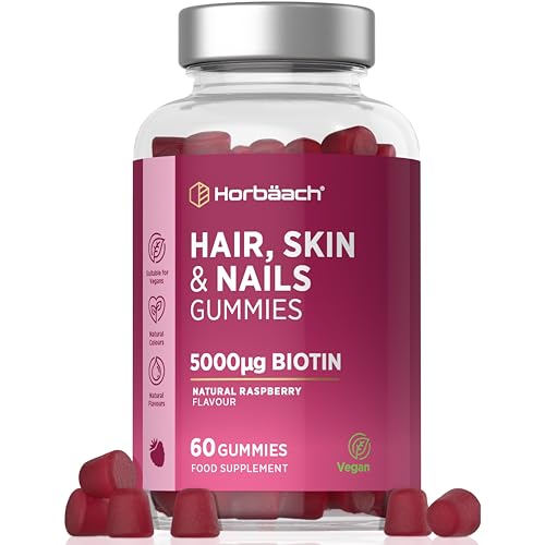 Vitamin Hår Hud Naglar Gummies | Biotin 5000 mcg | 60 Veganska Gummies | Folsyra med Vitamin B6 Vitamin B12 Vitamin C Vitamin A Vitamin D och Zink | av Horbaach