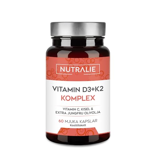 Vitamin D3 och K2 10000 IE - Immunitet Ben och Muskler - D3 K2 MK7 med Vitamin C och extra Jungfruolja - 60 Softgel Vitamin D Complex Nutralie