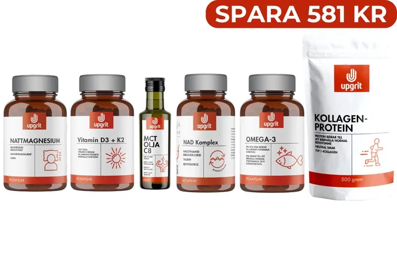 Årets Favoritpaket - Vitamin D3+K2, Omega-3, Kollagen, Nattmagneisum, NAD-Komplex & C8 MCT-olja
