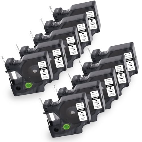 10 x Molabel kompatibel med Dymo D1 etikettband, 19 mm x 7 m, 45803 S0720830, svart på vitt, lämplig för Dymo LabelManager 350, 360D, 420P, 450, 500TS och LabelPoint 300, 350.
